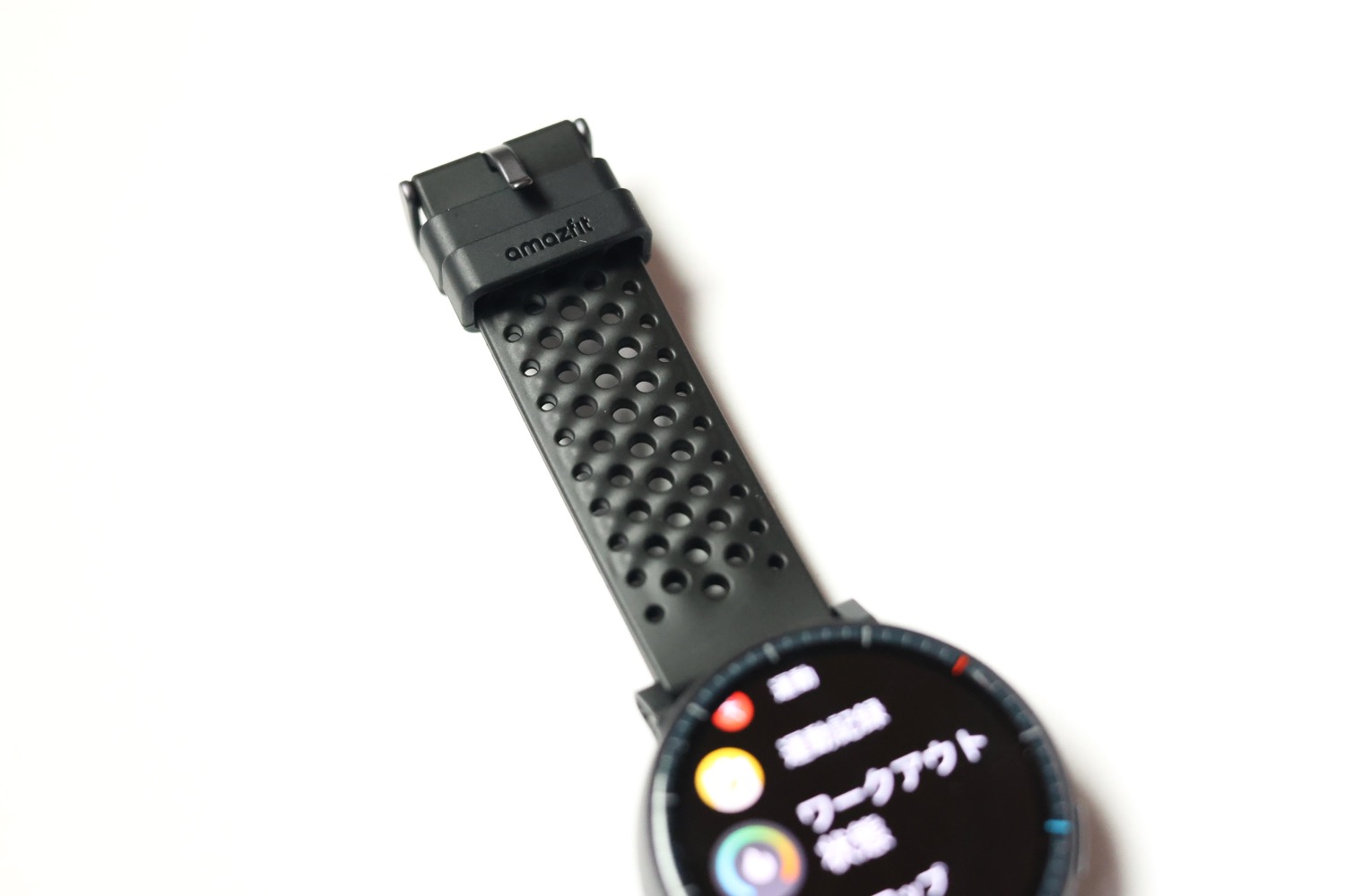 これまでのAmazfit製品とは一線を画すユニークなデザインです。円柱をスライスしたような丸みを帯びた意匠でクールな中にもどことなく柔らかみ、可愛らしさがあり、個人的には好きです。