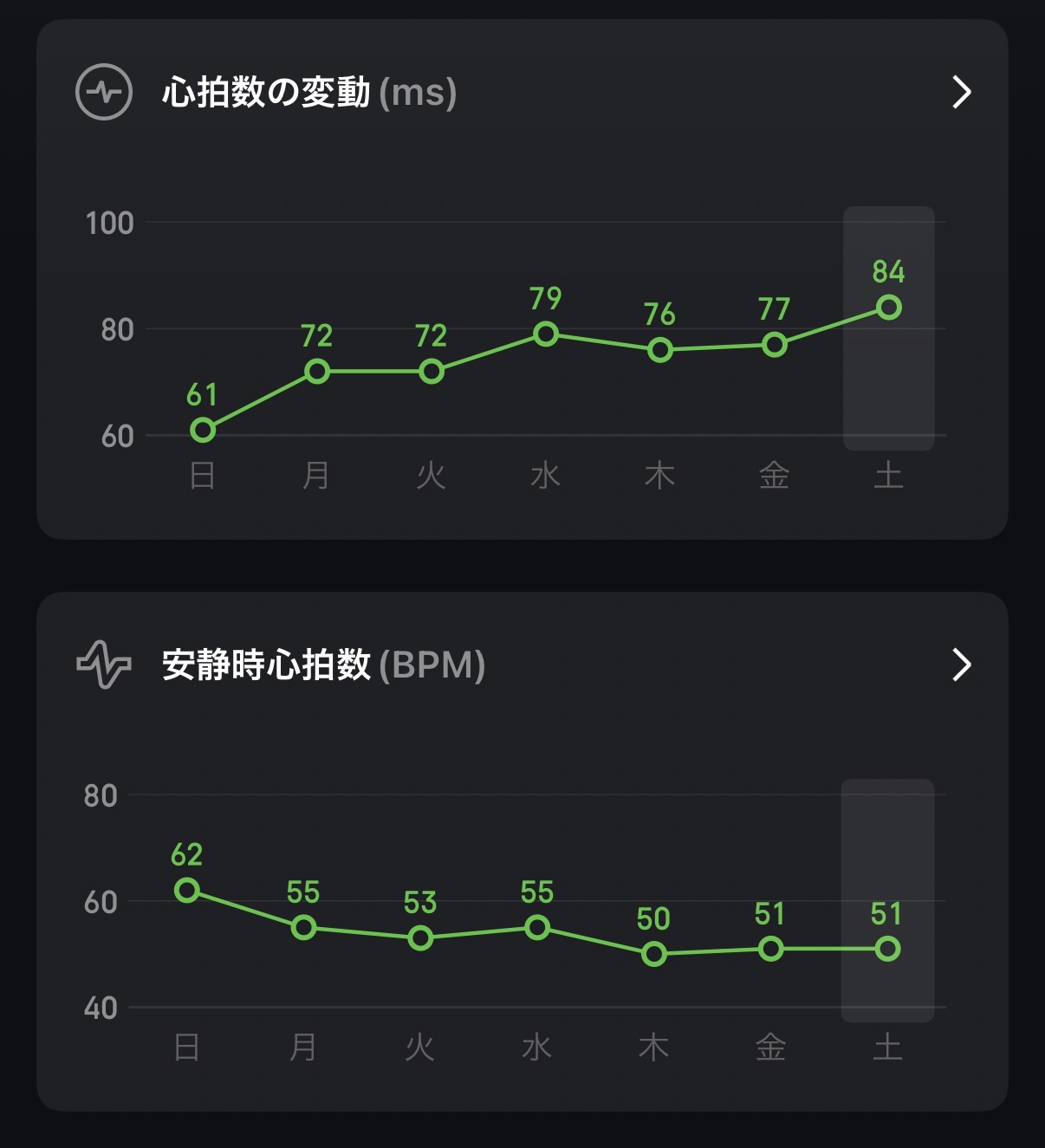 | 最小心拍数 | 76bpm | |